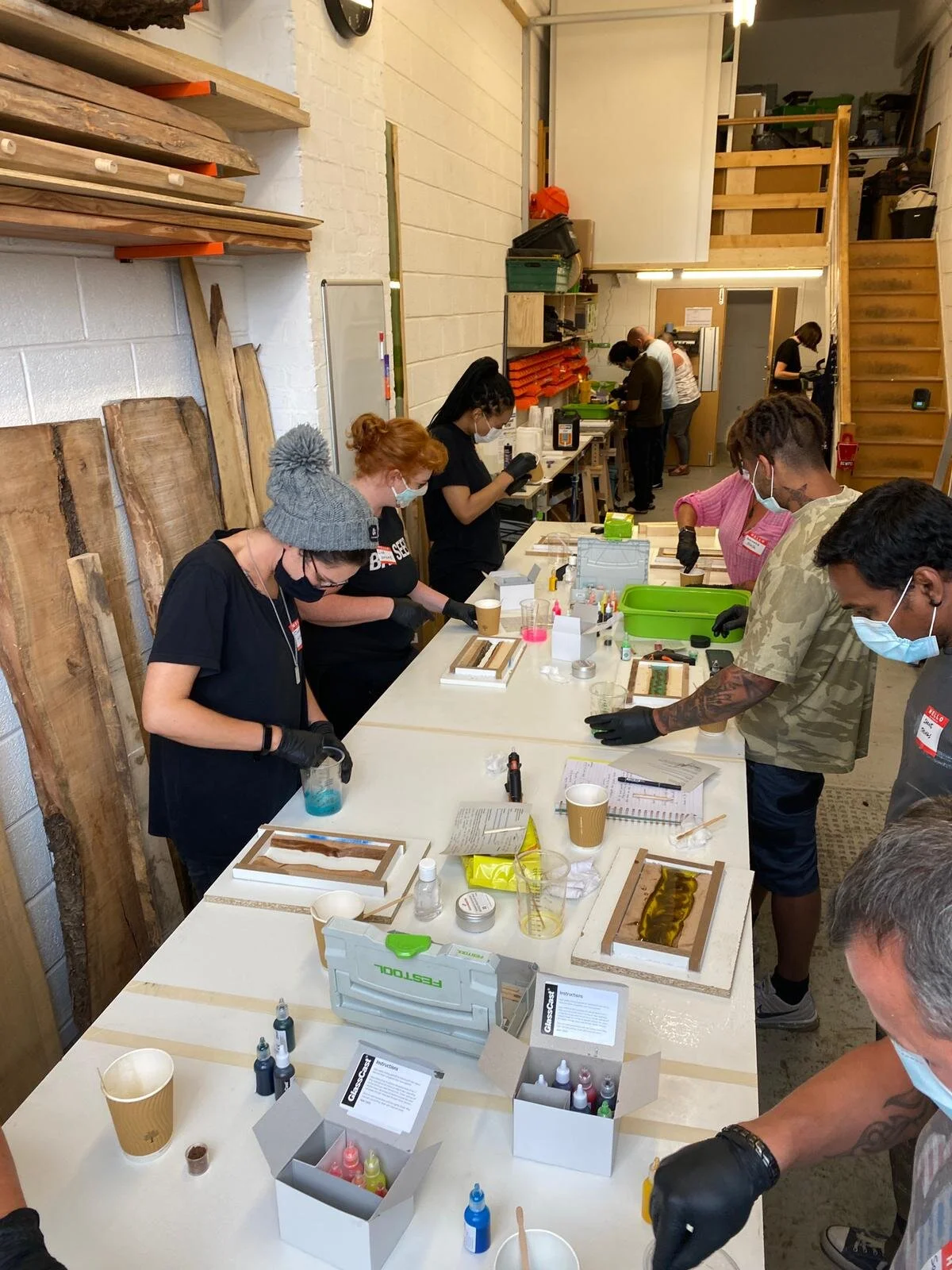 Richard is the director of Friendly Forces Construction; a company that focuses on the construction of domestic and commercial projects as well as offering interior design services. They are a dedicated team of carpenters, plumbers, decorators, painters, electricians, plasterers, landscapers and designers. After a very successful woodworking first class, Richard has decided to continue to offer it on certain Saturdays at his studio in Woolwich, London. He has since opened a new Epoxy Resin workshop, after using it in clients bespoke custom made furniture.